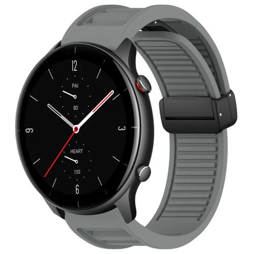 Correa de Silicona para Amazfit GTR 2E con Hebilla Magnética Plegable 22mm (Gris)