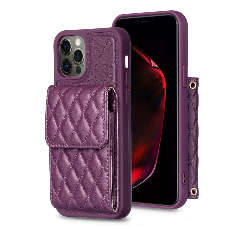 Funda para Teléfono iPhone 13 Pro Vertical Wallet Rhombic Cuero (Púrpura Oscuro)