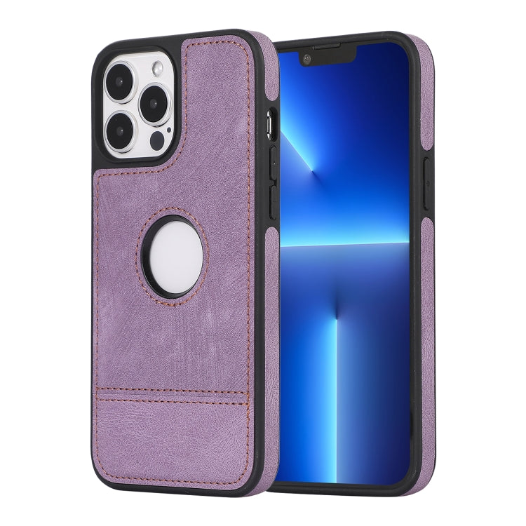 For iPhone 13 Pro Splicing Stitching PU Phone Case with Hollow Cutout (Purple)