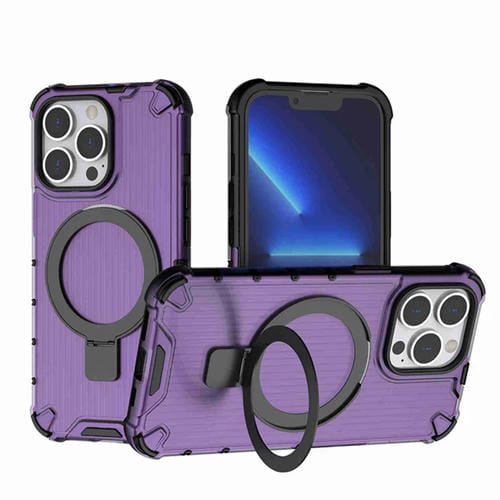 Funda para Teléfono iPhone 13 Pro Soporte Rejilla a Prueba de Golpes (Púrpura)