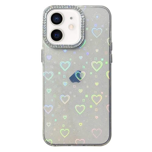 Caja de teléfono iPhone 11 Love Pattern Diamond Lens Frame Imd de Acrílico (Blanco)