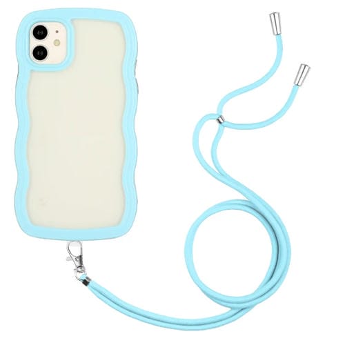 Funda para iPhone 11 Lanyard Candy Color Wave TPU Clear PC Phone Case (Azul)