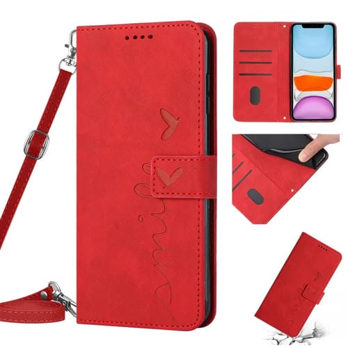 Funda de Cuero para Teléfono iPhone 11 Skin Feel Heart Pattern con Cordón (Rojo)