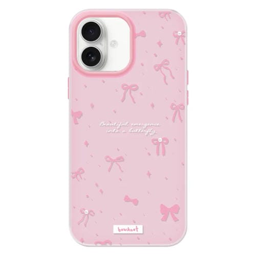 Funda híbrida TPU Policarbonato iPhone 16 Plus Tacto Sedoso (Rosa con lazo)