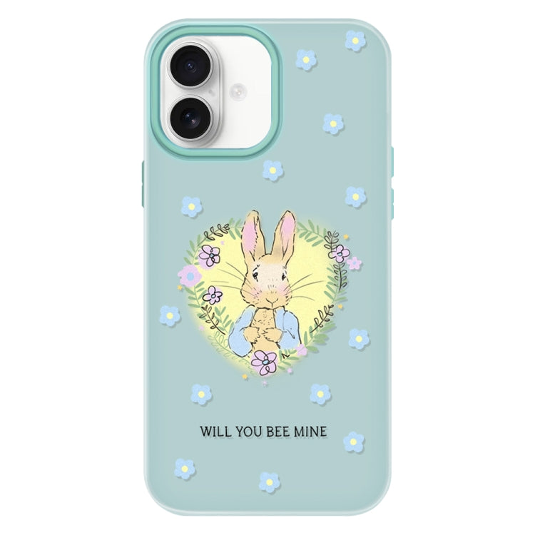 Funda híbrida TPU y Policarbonato iPhone 16 Conejo con Flores (Verde Claro)