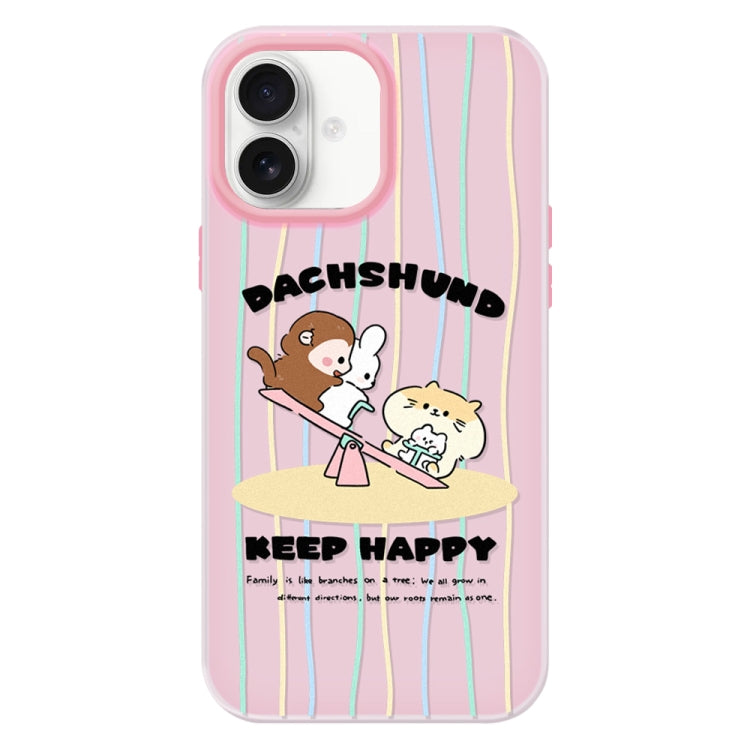 Funda híbrida TPU Policarbonato iPhone 16 Tacto Gelatina (Seesaw Animal Pink)