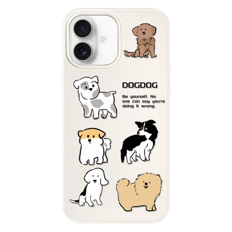 Funda híbrida TPU Policarbonato iPhone 16 Cachorro de Razas Múltiples (Blanco)