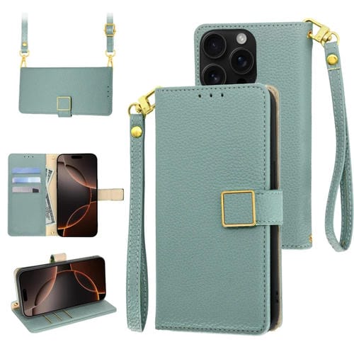 Funda de Cuero con Hebilla Cuadrada y Textura de Lichi para iPhone 16 Pro (Verde)