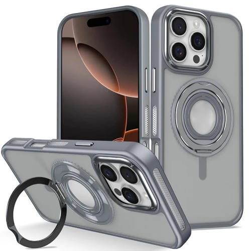 Funda de Silicona con Anillo Giratorio 360 Grados para iPhone 16 Pro (Gris)