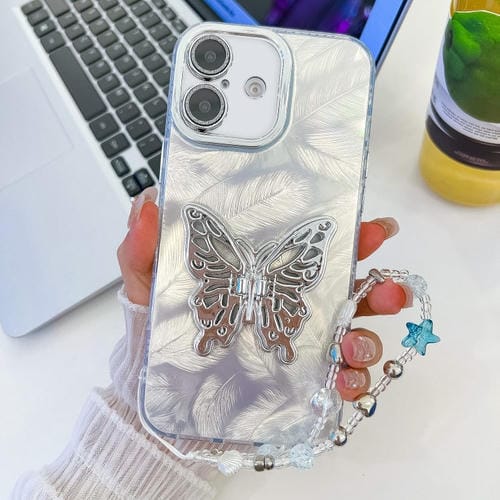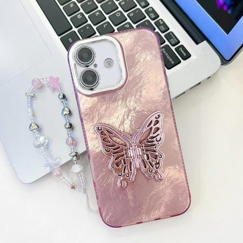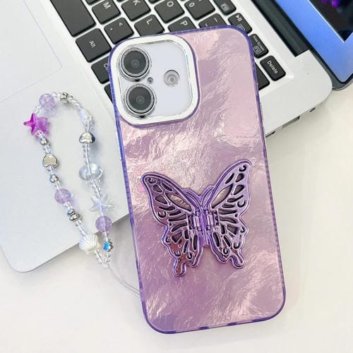 Funda para Teléfono iPhone 16 Plus Textura Película Lente Correa Muñeca (Blanco)