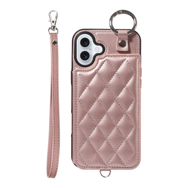 Funda para Teléfono Apple iPhone 16 Plus Textura Rómbica Cordón Corto (Oro Rosa)
