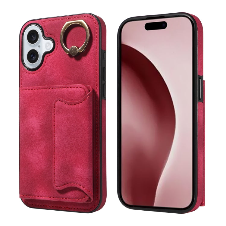 Funda para Teléfono iPhone 16 Plus con Tarjetero y Hebilla de Anilla (Roja)