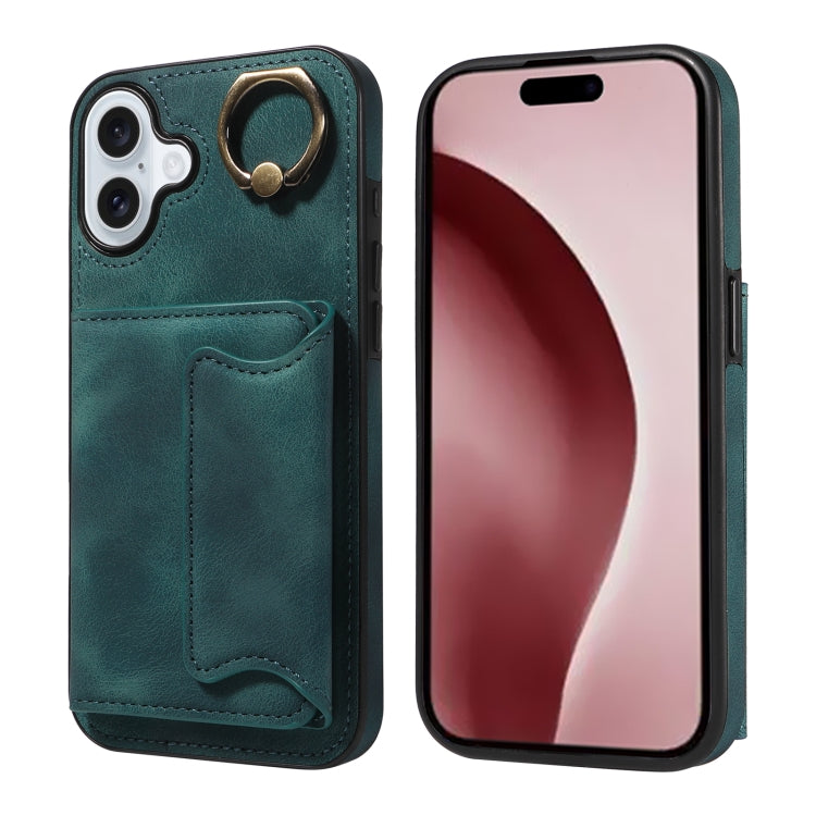 Funda para Teléfono iPhone 16 Plus con Tarjetero y Hebilla de Anilla (Verde)