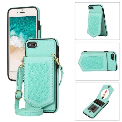 Funda para iPhone 6S / 6 Rhombic Texture Rfid con Cordón y Espejo (Verde Menta)