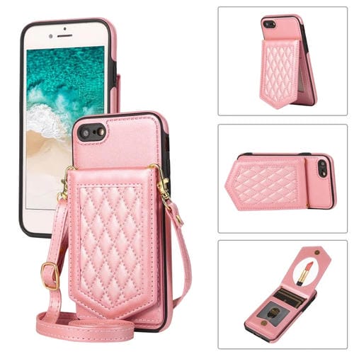 Funda para iPhone 6S / 6 Rhombic Texture Rfid con Cordón y Espejo (Oro Rosa)