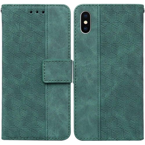 Estuche de Teléfono para iPhone Xs Max Cuero En Relieve Geométrico (Verde)