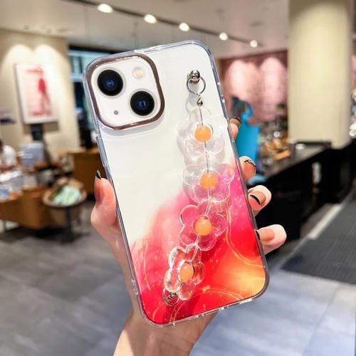 Estuche para iPhone 14 con Diseño de Mármol y Halo con Brazalete de Flores (Rojo)