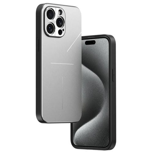 For iPhone 14 R-JUST RJ52 3 Lines Style Metal TPU Shockproof Phone Case (Silver)