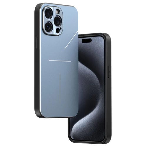 For iPhone 14 R-JUST RJ52 3 Lines Style Metal TPU Shockproof Phone Case (Blue)