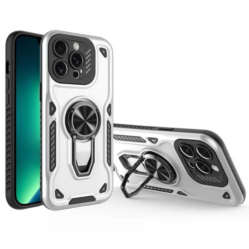 Funda para Teléfono iPhone 13 Pro Max TPU PC Soporte Giratorio Metal (Blanco)