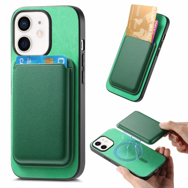 Funda para Teléfono iPhone 12 Retro Magsafe Card Bag Pu con Contraportada (Verde)
