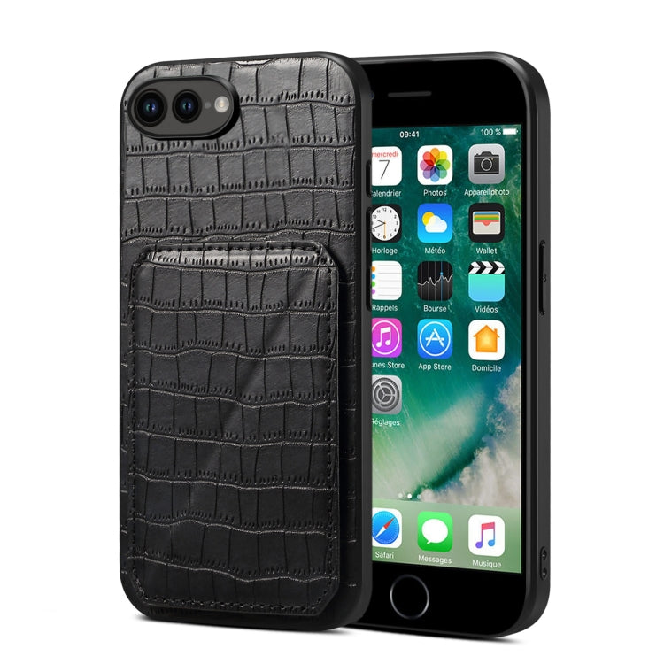 Funda Trasera iPhone 8 Plus/7 Plus Piel Cocodrilo Imitación con Soporte (Negro)