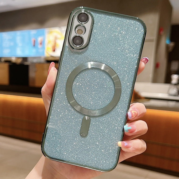 Funda para Teléfono iPhone Xs Max Magsafe Glitter Galvanoplastia TPU (Verde)