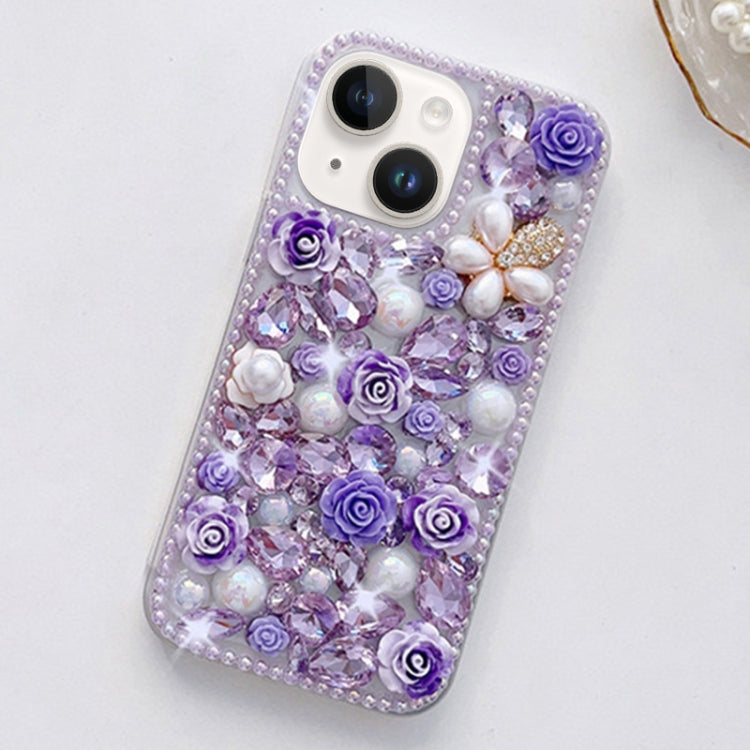 Estuche para Teléfono iPhone 14 con PC Diamantes Engastados a Mano (Rosa Púrpura)