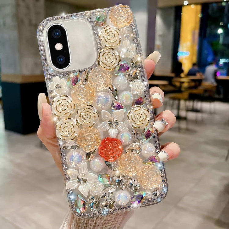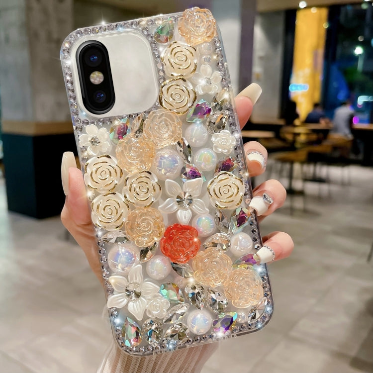 Estuche para Teléfono iPhone X / Xs Rose con Diamante Perlado para PC (Albaricoque)