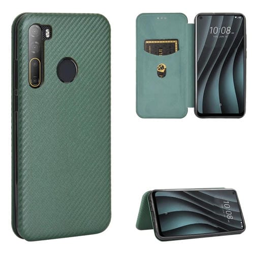 Funda de Cuero Rfid con Relieve en Panal para HTC U24 Pro (Verde Pavo Real)