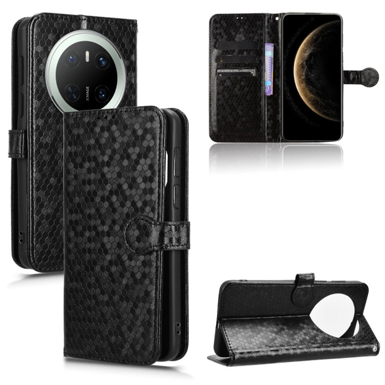 Funda de Cuero Huawei Mate 70 con Textura de Puntos en Forma de Panal (Negra)