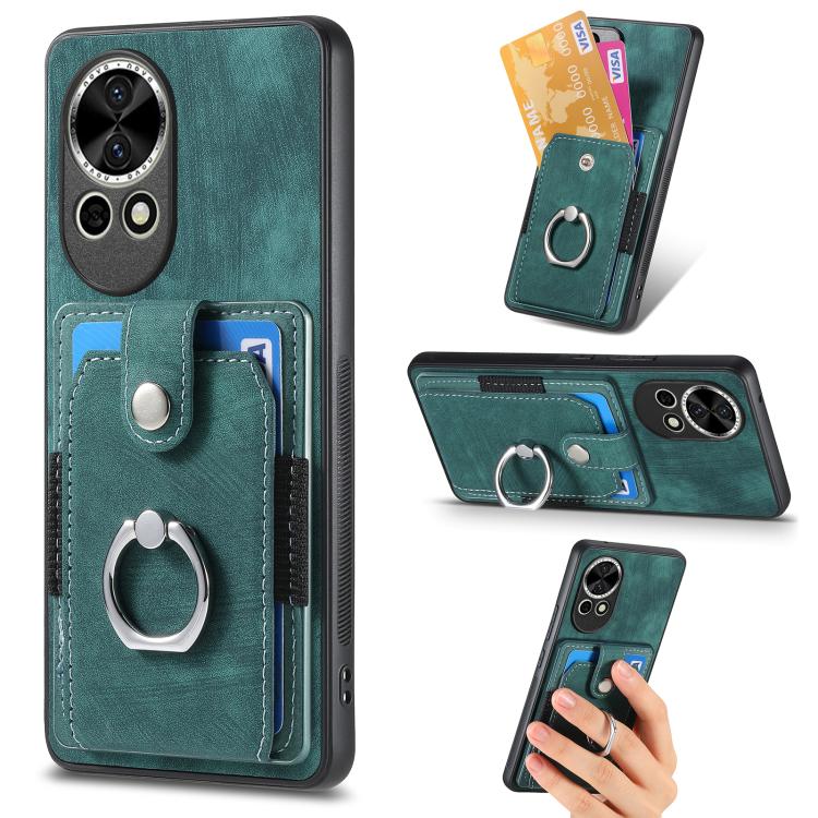 Funda para Teléfono Huawei Nova 13 con Tarjetero y Anillo Tacto de Piel (Verde)
