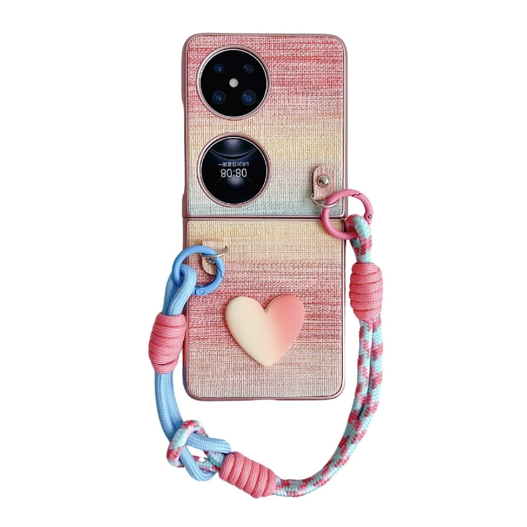 Funda para Huawei Pocket 2 con Textura de Cuero Ilusorio y Correa (Rosa)