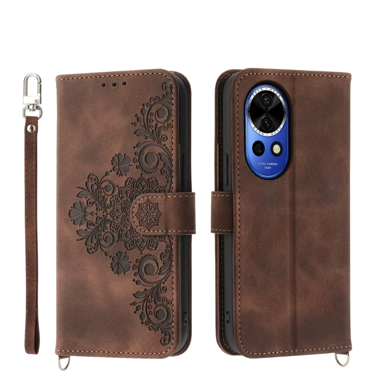 Funda de Cuero para Huawei Nova 12 con Billetera en Relieve y Flores (Marrón)