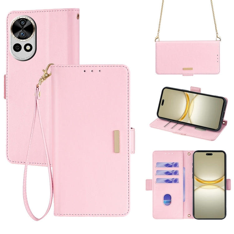 Funda de Cuero con Cadena Cruzada para Huawei Nova 12 Pro / 12 Ultra (Rosa)