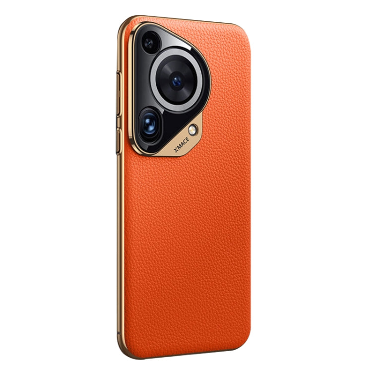 Funda para Huawei Pura 70 Pro / Pro+ de Cuero Genuino con Textura Litchi (Naranja)