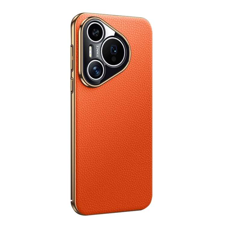 Funda de Cuero Genuino para Huawei Pura 70 Ultra con Textura Litchi (Naranja)