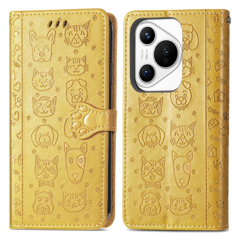 Funda para Huawei Pura 70 Pro+ de Cuero con Relieve de Perro y Gato (Amarillo)