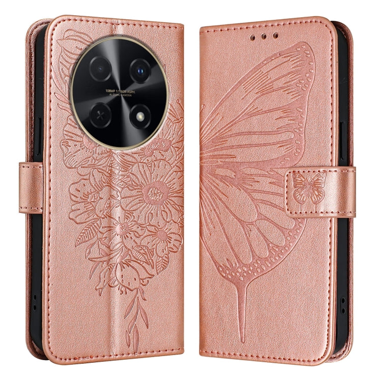 Funda de Cuero para Huawei Nova 12I 4G con Mariposa en Relieve (Oro Rosa)