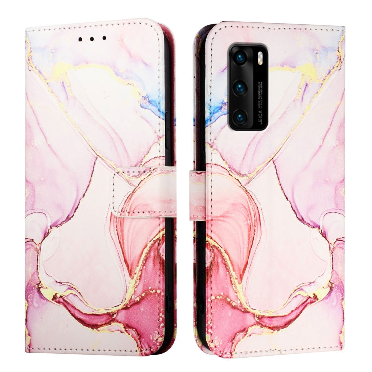 Funda de Cuero para Huawei P40 Pt003 con Tapa y Patrón de Mármol (Oro Rosa)