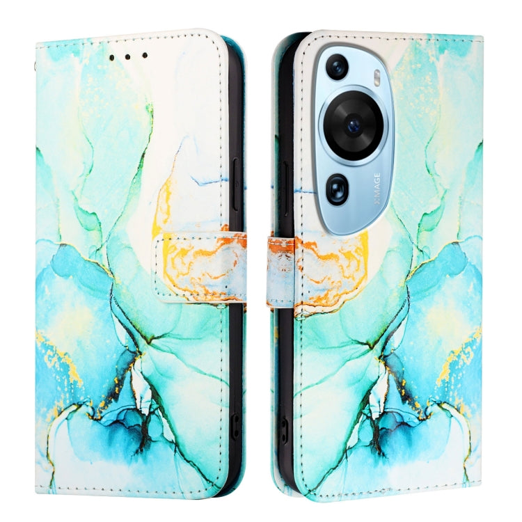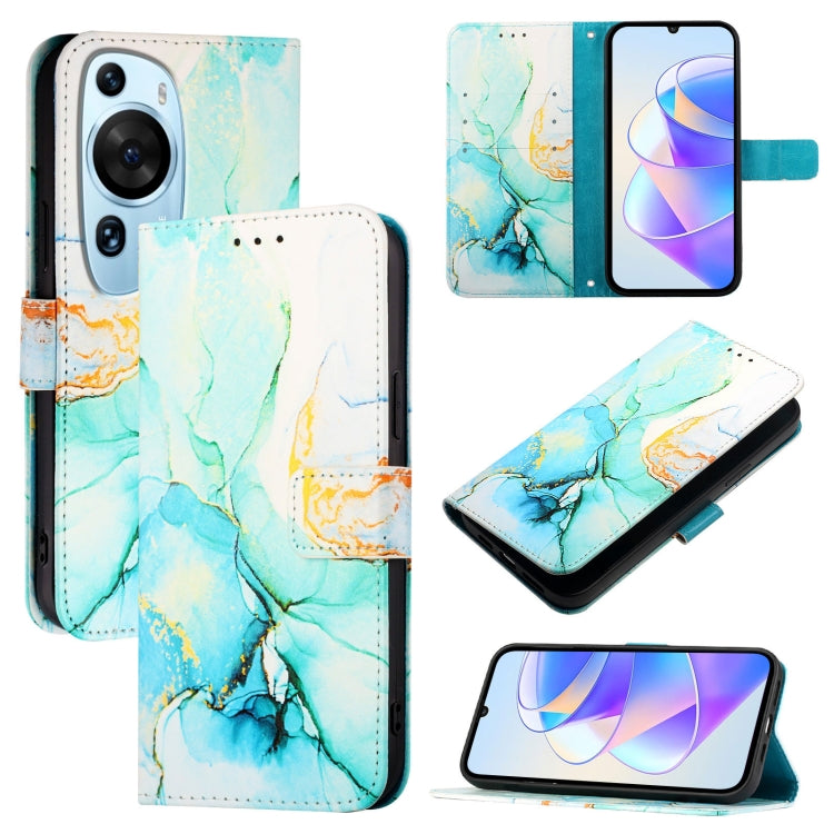 Funda de Cuero para Huawei Pura 70 Pt003 con Tapa y Patrón de Mármol (Verde)