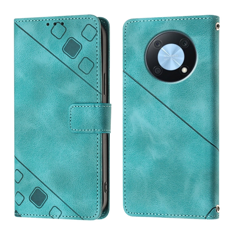 Funda de Cuero Skin Feel para Huawei Enjoy 50 Pro y Nova Y90 en Relieve (Verde)