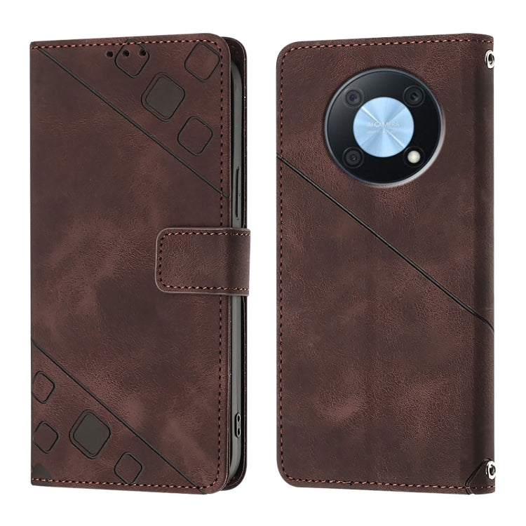 Funda de Cuero Skin Feel para Huawei Enjoy 50 Pro y Nova Y90 en Relieve (Marrón)