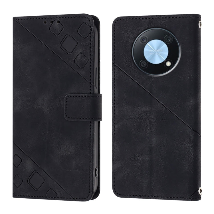 Funda de Cuero Skin Feel para Huawei Enjoy 50 Pro y Nova Y90 en Relieve (Negro)