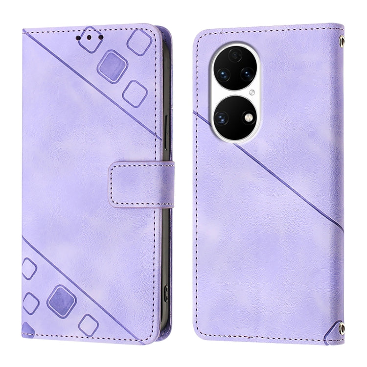 Funda de Cuero Huawei P50 Skin Feel para Teléfono en Relieve (Púrpura Claro)