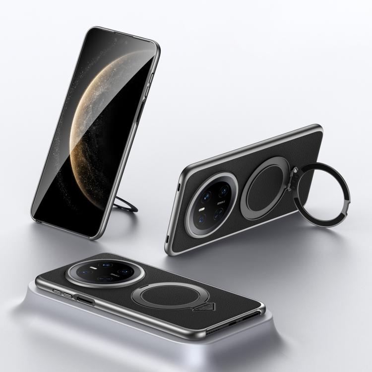 Funda para Teléfono Huawei Mate 70 con Soporte Magnético Magsafe de Cuero (Negro)