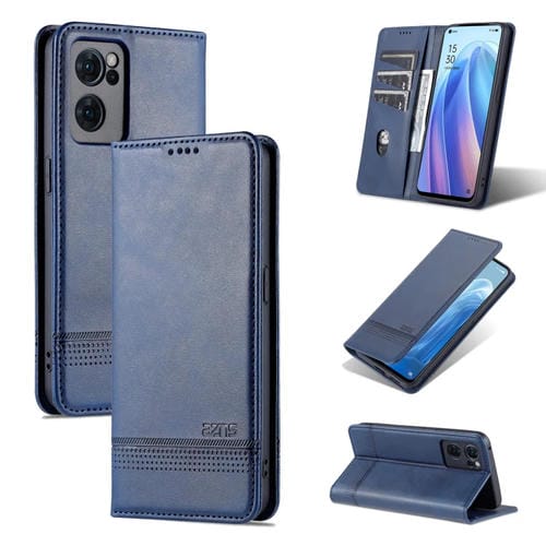 Funda Oppo Reno7 Azns Magnetic Balf Texture Horizontal Flip Cuero (Azul Oscuro)