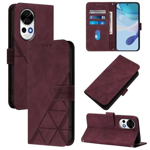Funda de Cuero con Tapa y Relieve 3D para Huawei Nova 13 Pro (Rojo Vino)
