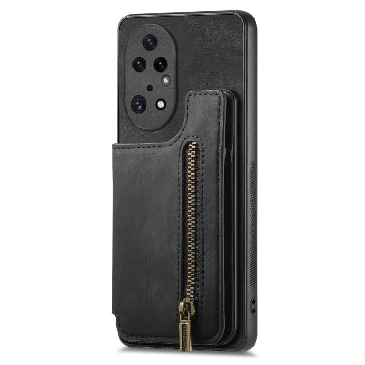 Funda de Cuero Retro con Cremallera y Billetera para Huawei P50 Pro (Negra)
