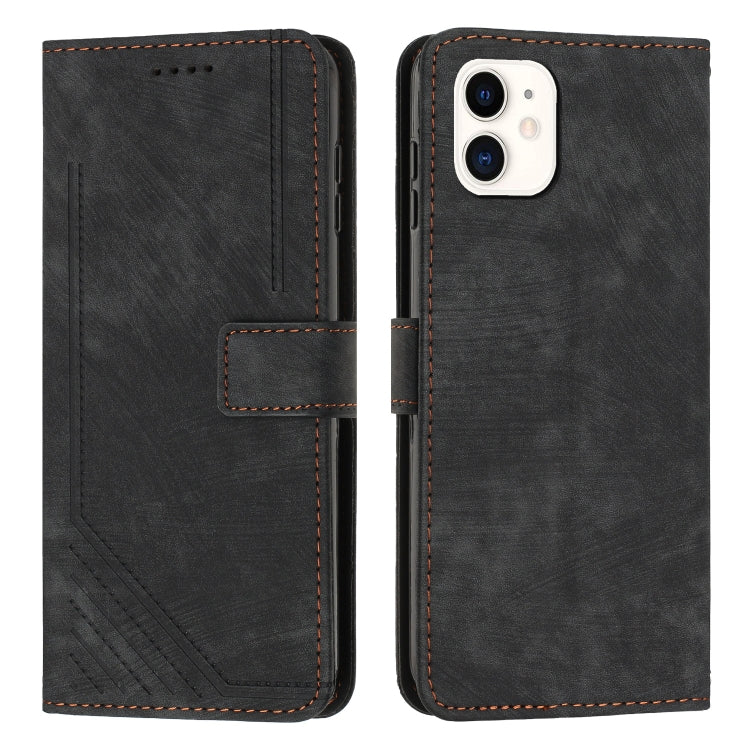 Funda para iPhone 11 Skin Feel Stripe Pattern de Cuero con Cordón (Negro)